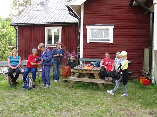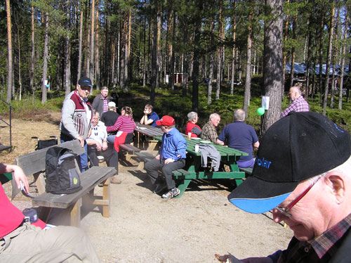 | Äldst tar täten för att hitta fram. | Hela 2011 års vandrargäng så när som fotografen samlade på paviljongen för välförtjänt fikapaus. |