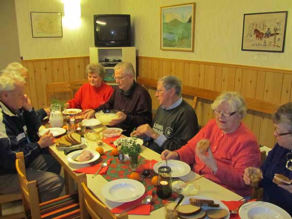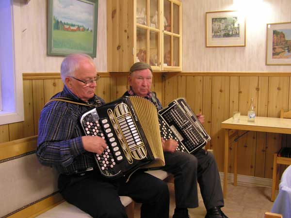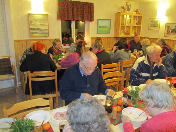 | Drygt 30 personer hörsammade kallelsen till julgrötsätning på Vallencia. Där bjöds förutom på risgrynsgröt, skinka, julmust och kaffe med pepparkaka även på glad och trevlig musik av alltid likaledes glada och trevliga musikanterna Gösta Markusson och Nils-Arne Nilsson. | |