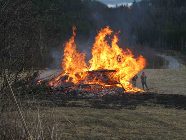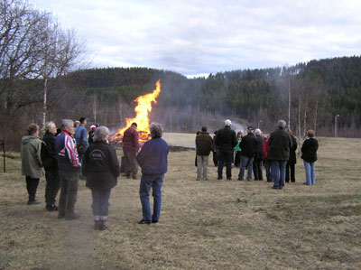 majbrasa nere i Bäckbacken och besök av kören Oktaven som sjöng de traditionella vårsångerna. Därefter korvgrillning och fika med stort gemyt. |