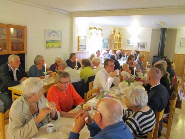 Efter gudstjänsten bjöds deltagarna på kaffe med smörgås och sommarbakelse av
