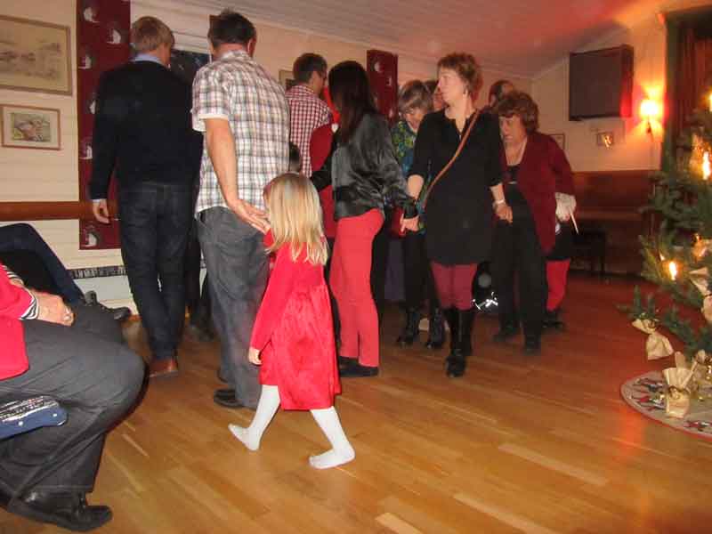 Ett 50-tal, både gammal och ung, dansade kring granen, sjöng julsånger,