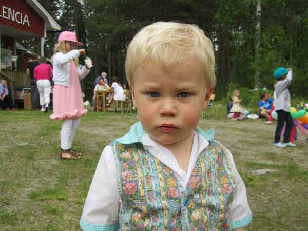 Håkan Blomström hade gjort sig extra fin inför dansen kring midsommarstången |